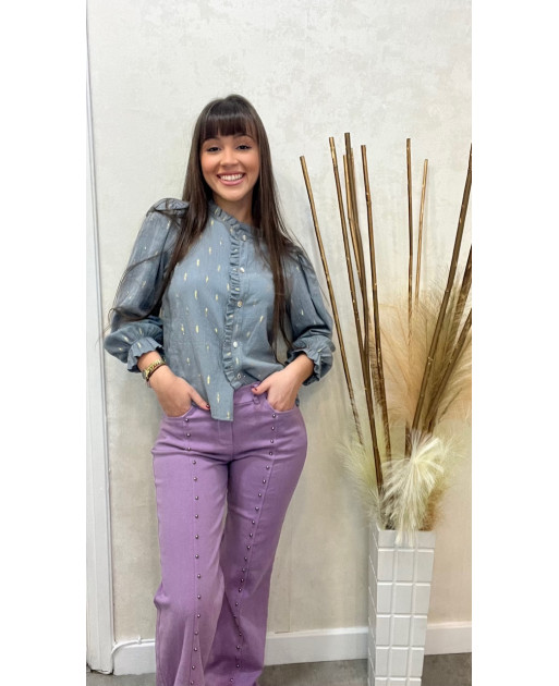 Pantalón con tachuelas en línea frontal mide aproximadamente 37 cm y llegas a tirarse hasta los 45 cm es una talla única válida una talla S hasta una L